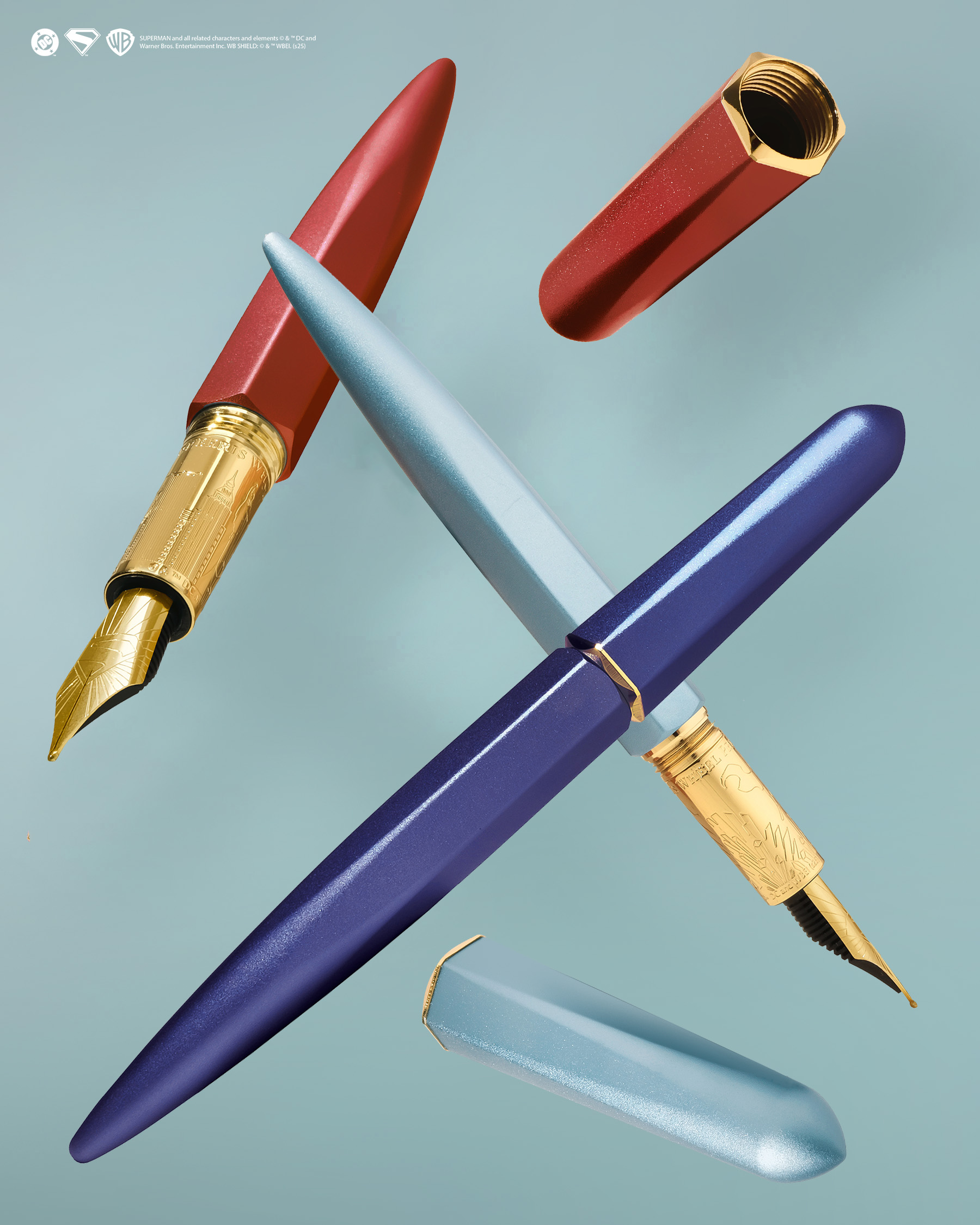Confident and expressive, the Voice of Metropolis set stands out with a striking scarlet Superman Edition Marquise Fountain Pen. Complimented by the Scarlet Metropolis 28ml Ink – a bold, luminous red with blue shimmer created to make a statement.